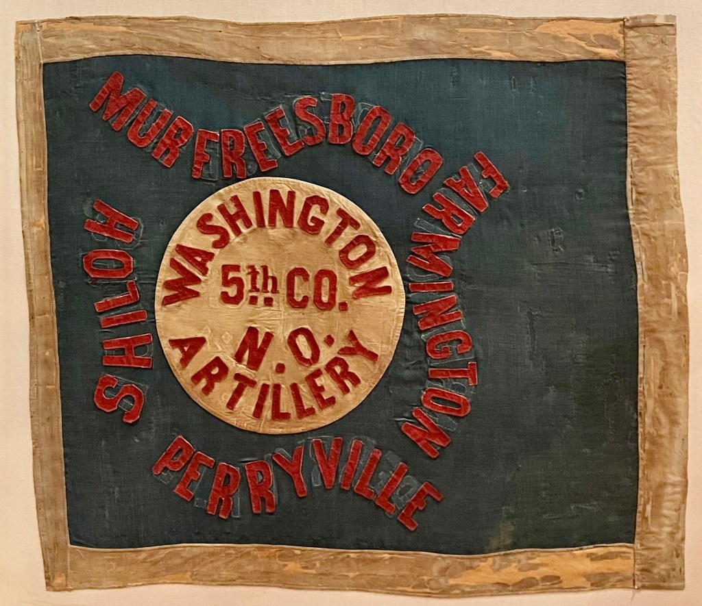 Washington Artillery Battalion was organized in 1838 and fought in the Mexican War. It then was known as the “Native American” Battery. Reorganized in 1852 as the Washington Artillery, it was mustered into Confederate service on May 26, 1861, with five companies. The 1st, 2nd, 3rd, and 4th Companies fought at First Manassas and in the difficult campaigns of the Army of Northern Virginia from Seven Pines to Gettysburg. They were involved at Drewry’s Bluff and Cold Harbor, then in the Petersburg siege south and north of the James River and the Appomattox Campaign. The battalion lost 4 killed and 26 wounded during the Maryland Campaign, had 3 killed and 22 wounded at Fredericksburg, and of the 329 engaged at Gettysburg, eighteen percent were disabled. On April 9, 1865, only 3 officers and 22 men were present. The 5th Company fought at Shiloh, was active in the Kentucky Campaign and the Battle of Murfreesboro, then moved to Mississippi. Later it participated in the campaigns of the Army of Tennessee from Chickamauga to Nashville and 1865 shared in the defense of Mobile. The company lost 1 killed and 4 wounded at Murfreesboro, had 5 officers and 132 men fit for duty in January 1863, and reported 10 killed and 20 wounded at Chickamauga. It totalled 118 men in December 1863, and 116 in April 1864. Most of the unit was captured when Mobile fell, but a small number surrendered at West Point, Georgia, in mid-April, 1865.