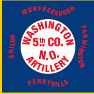 Washington Artillery Battalion was organized in 1838 and fought in the Mexican War. It then was known as the “Native American” Battery. Reorganized in 1852 as the Washington Artillery, it was mustered into Confederate service on May 26, 1861, with five companies. The 1st, 2nd, 3rd, and 4th Companies fought at First Manassas and in the difficult campaigns of the Army of Northern Virginia from Seven Pines to Gettysburg. They were involved at Drewry’s Bluff and Cold Harbor, then in the Petersburg siege south and north of the James River and the Appomattox Campaign. The battalion lost 4 killed and 26 wounded during the Maryland Campaign, had 3 killed and 22 wounded at Fredericksburg, and of the 329 engaged at Gettysburg, eighteen percent were disabled. On April 9, 1865, only 3 officers and 22 men were present. The 5th Company fought at Shiloh, was active in the Kentucky Campaign and the Battle of Murfreesboro, then moved to Mississippi. Later it participated in the campaigns of the Army of Tennessee from Chickamauga to Nashville and 1865 shared in the defense of Mobile. The company lost 1 killed and 4 wounded at Murfreesboro, had 5 officers and 132 men fit for duty in January 1863, and reported 10 killed and 20 wounded at Chickamauga. It totalled 118 men in December 1863, and 116 in April 1864. Most of the unit was captured when Mobile fell, but a small number surrendered at West Point, Georgia, in mid-April, 1865.